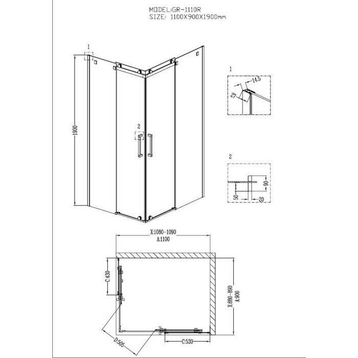 Душевой уголок Grossman GR-1110R 110х90