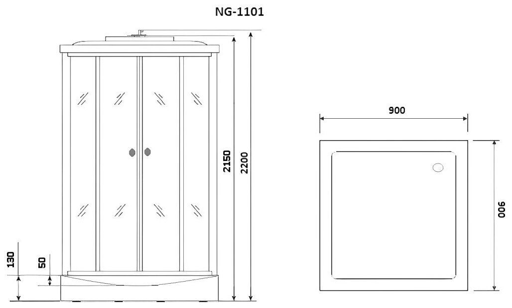Душ.каб. NG-1101-14 (900х900х2150) низкий поддон(13см) стекло матовое с полкой
