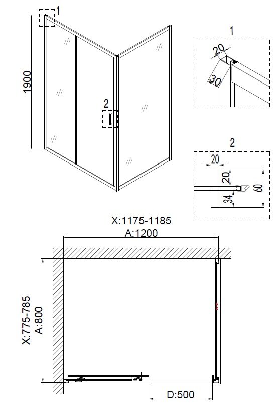 Душевое ограждение Niagara Nova 68120812BLACK 120х80