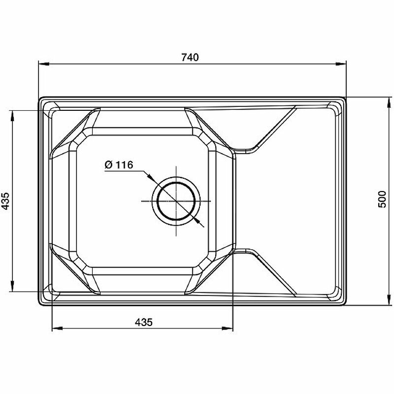Мойка GRANFEST GF-U--740L чаша+крыло 740*500мм (черный-308)