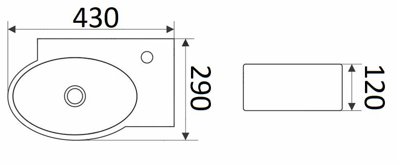 Раковина подвесная CeramaLux N 9100L левосторонняя 43x29 см, белая