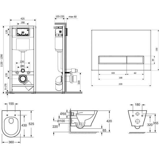 Комплект 6 в 1 Lavinia Boho Elegant Rimless 87561078, безободковый унитаз, сиденье микролифт, инсталляция, клавиша смыва, шумоизоляция