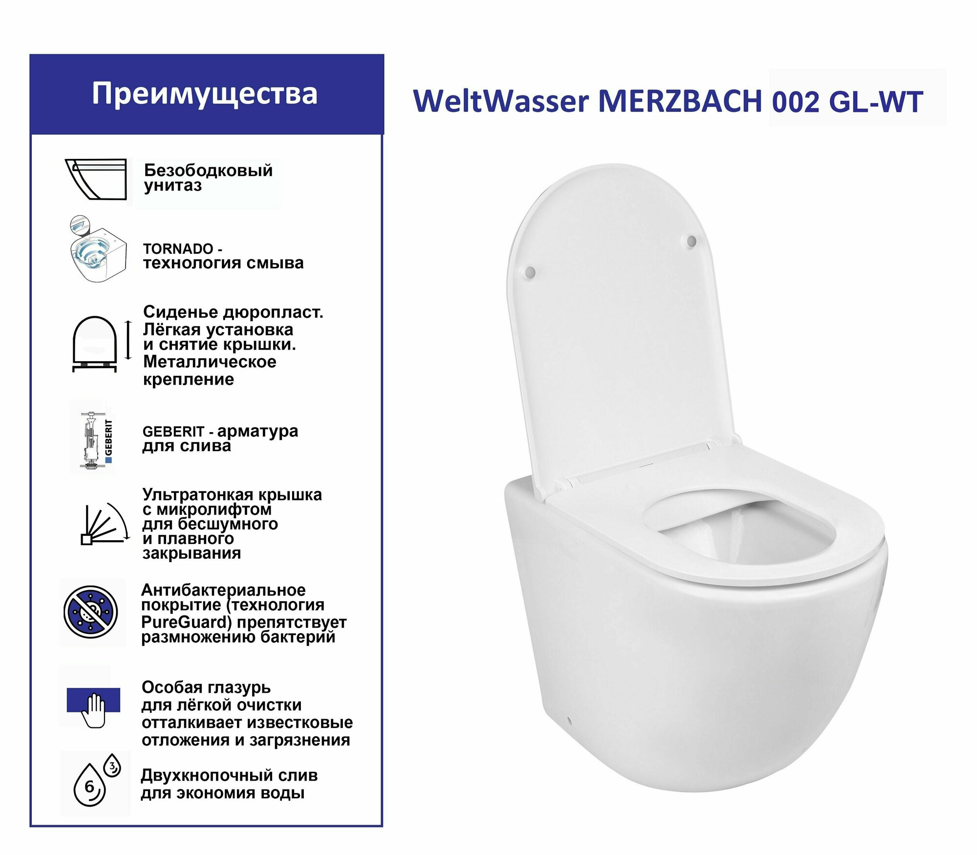Безободковый напольный унитаз Weltwasser MERZBACH белый глянец , сиденье с микролифтом