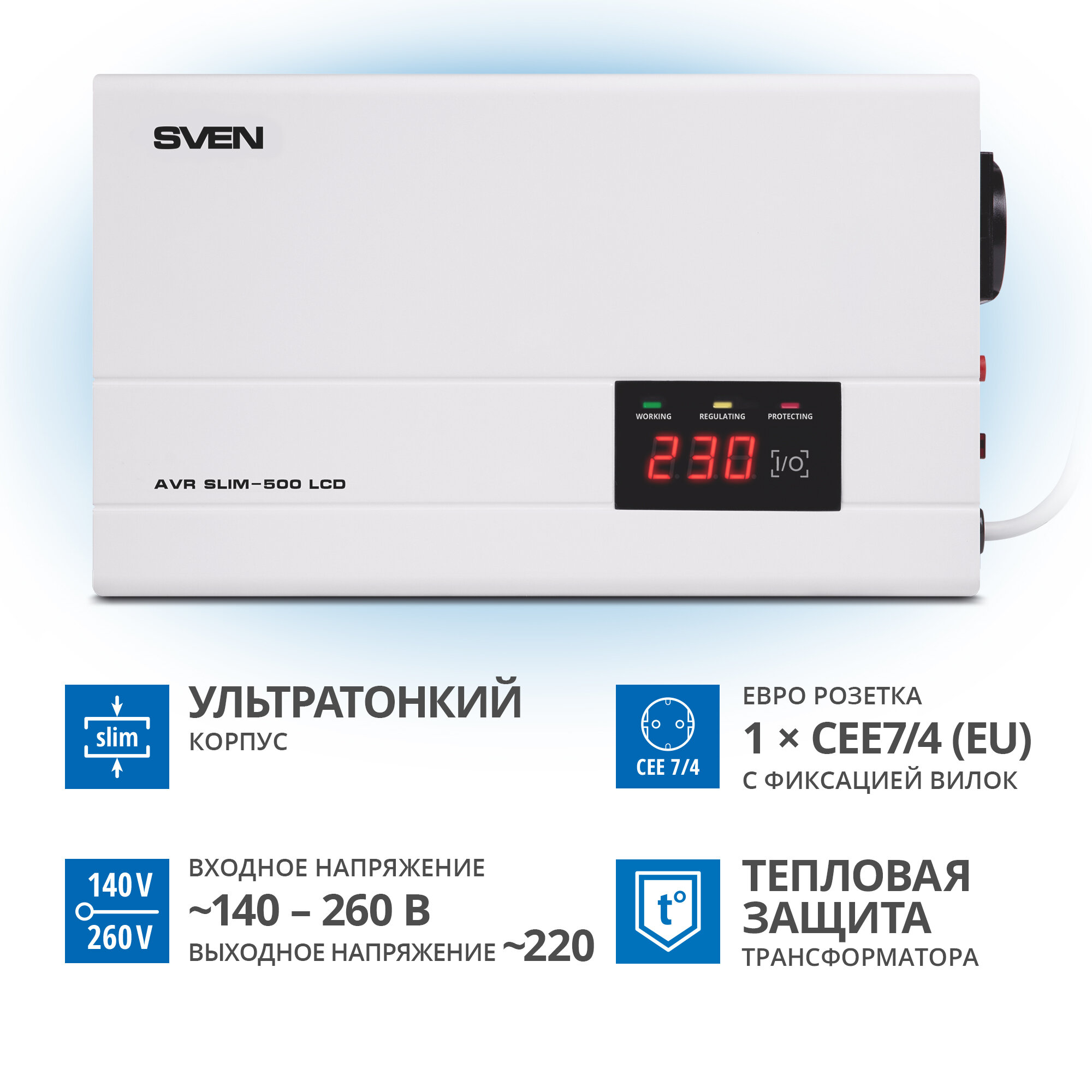 Sven Стабилизатор напряжения AVR SLIM-500 LCD белый