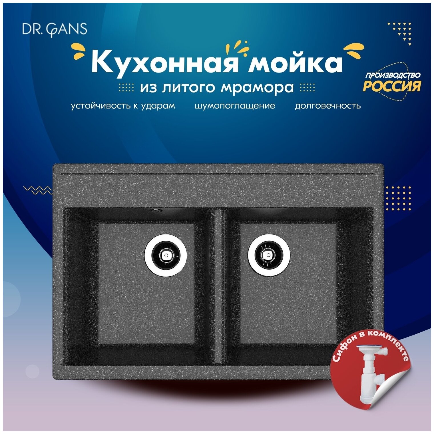 Мойка кухонная из искусственного мрамора Dr. Gans Астра 780 (цвет черный)