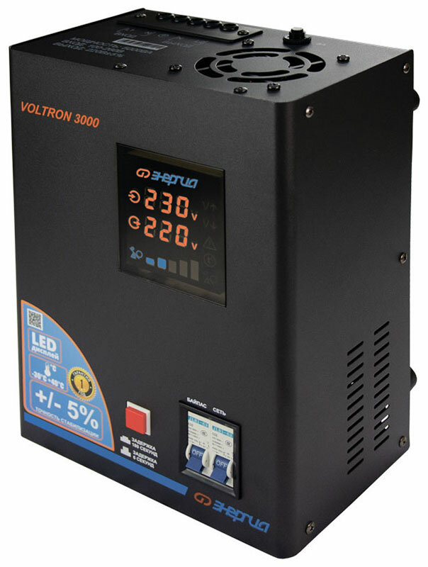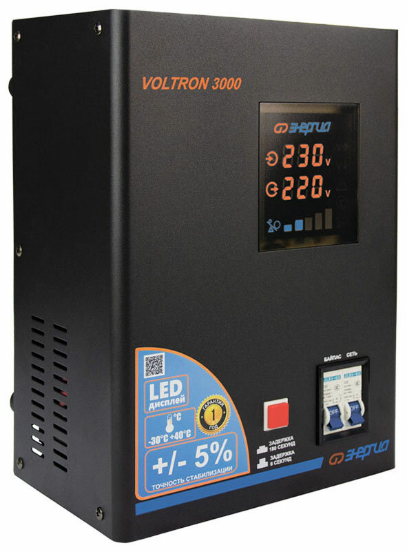 Cтабилизатор Энергия Voltron 3000 по точности: 105-265В по защите: 95-280В .