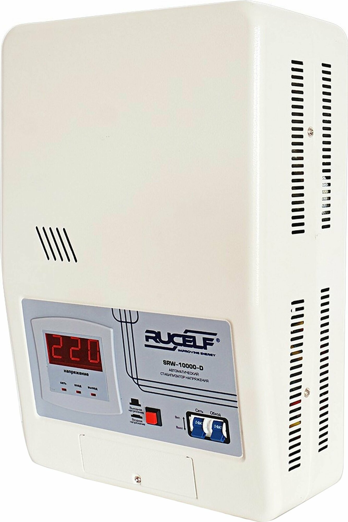 Стабилизатор напряжения настенный релейный RUCELF SRW-10000-D 10000 ВА от 140В для защиты техники от замыкания и скачков