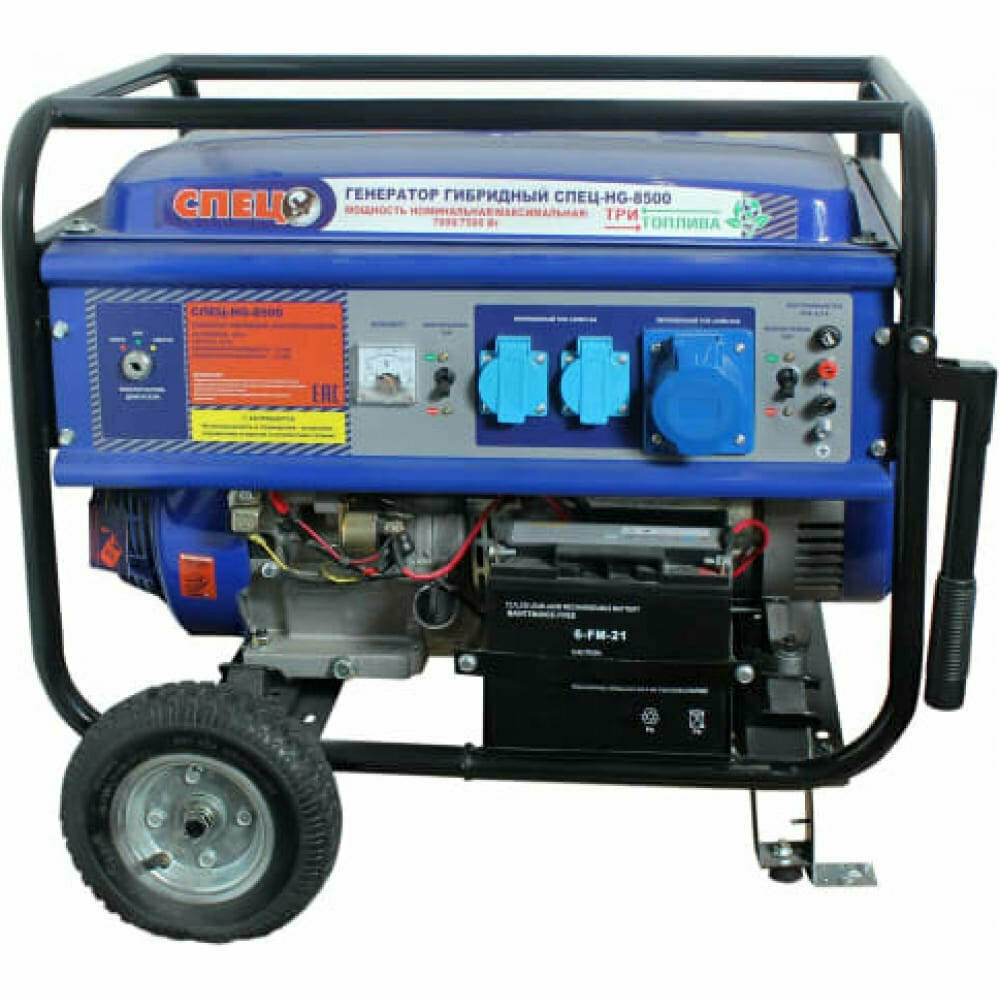 Спец Генератор гибридный газ-бензин 1фаз,номмакс=6,57,0 кВт, 13л.с. СПЕЦ-HG-8000