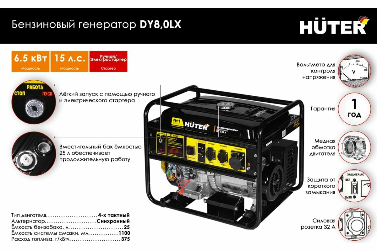 Ниже Вы можете прочитать отзывы на Генератор Huter DY8,0LX 7кВт, ознакомится с подробными характеристиками, посмотреть интересные обзоры и фотографии на Генератор Huter DY8,0LX 7кВт.