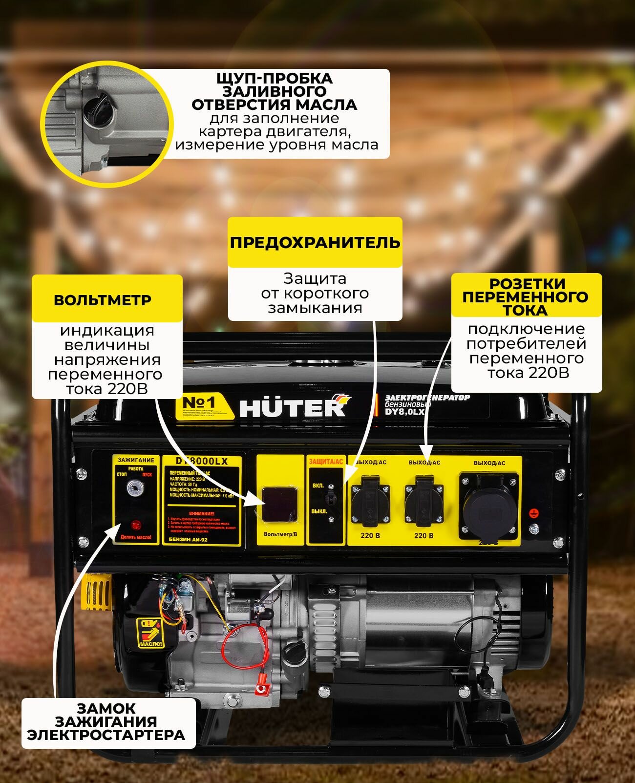 Бензиновый генератор Huter DY8,0LX, 220 В, 7кВт [64/1/76]
