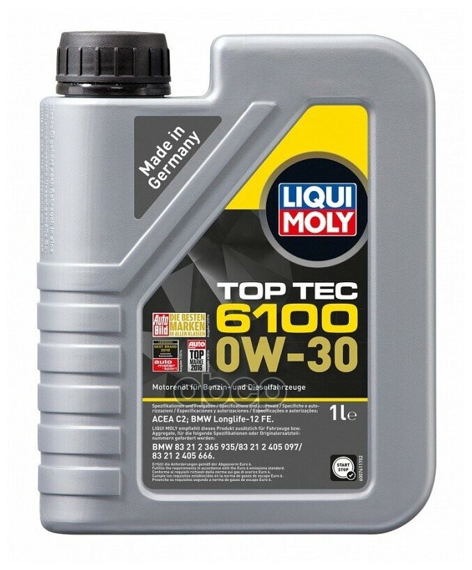 Ниже Вы можете прочитать отзывы на 0W-30 Top Tec 6100 C2 (1л) синт. мот.масло (Liqui Moly 20777), ознакомится с подробными характеристиками, посмотреть интересные обзоры и фотографии на 0W-30 Top Tec 6100 C2 (1л) синт. мот.масло (Liqui Moly 20777).