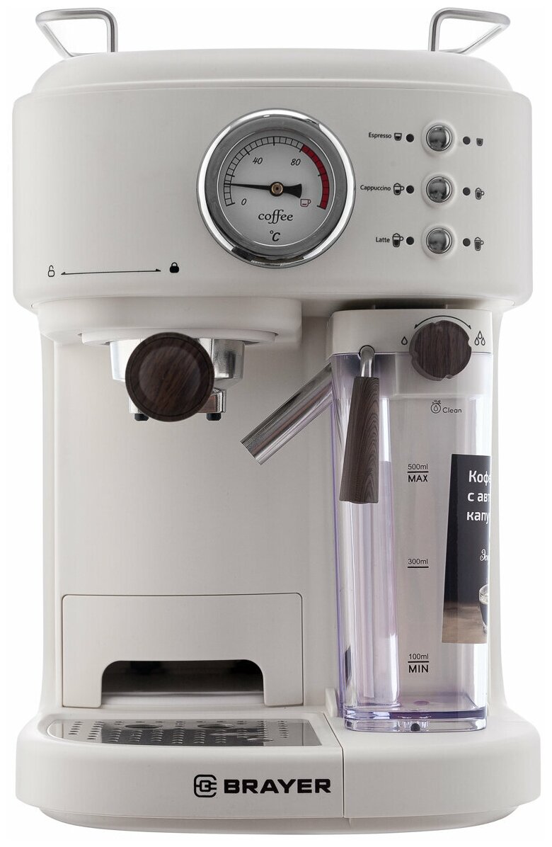 Кофеварка рожковая BRAYER BR1108 бежевый интересное: