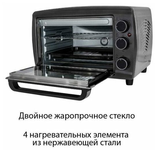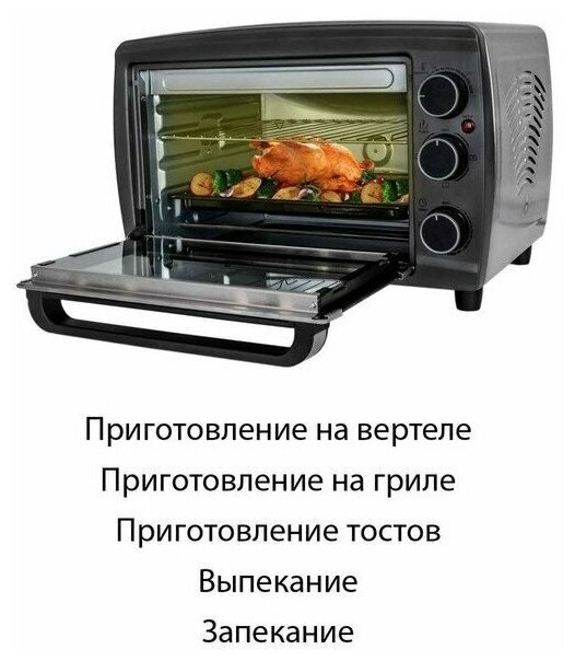 Мини-печь электрическая, объем 26 литров, мощность 1600 ватт, температура нагрева от 100 до 250 град .
