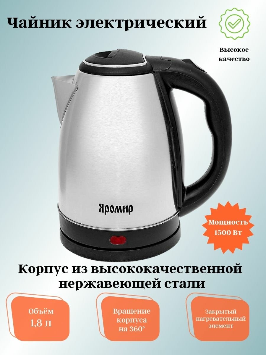 Чайник электрисеский яромир ЯР-1058 1,8л, 1500 Вт, нержавеющая сталь