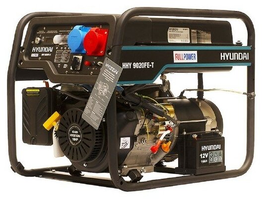 Бензиновый генератор Hyundai HHY 9020FE-T, 380/220/12 В, 6.5кВт, с АКБ