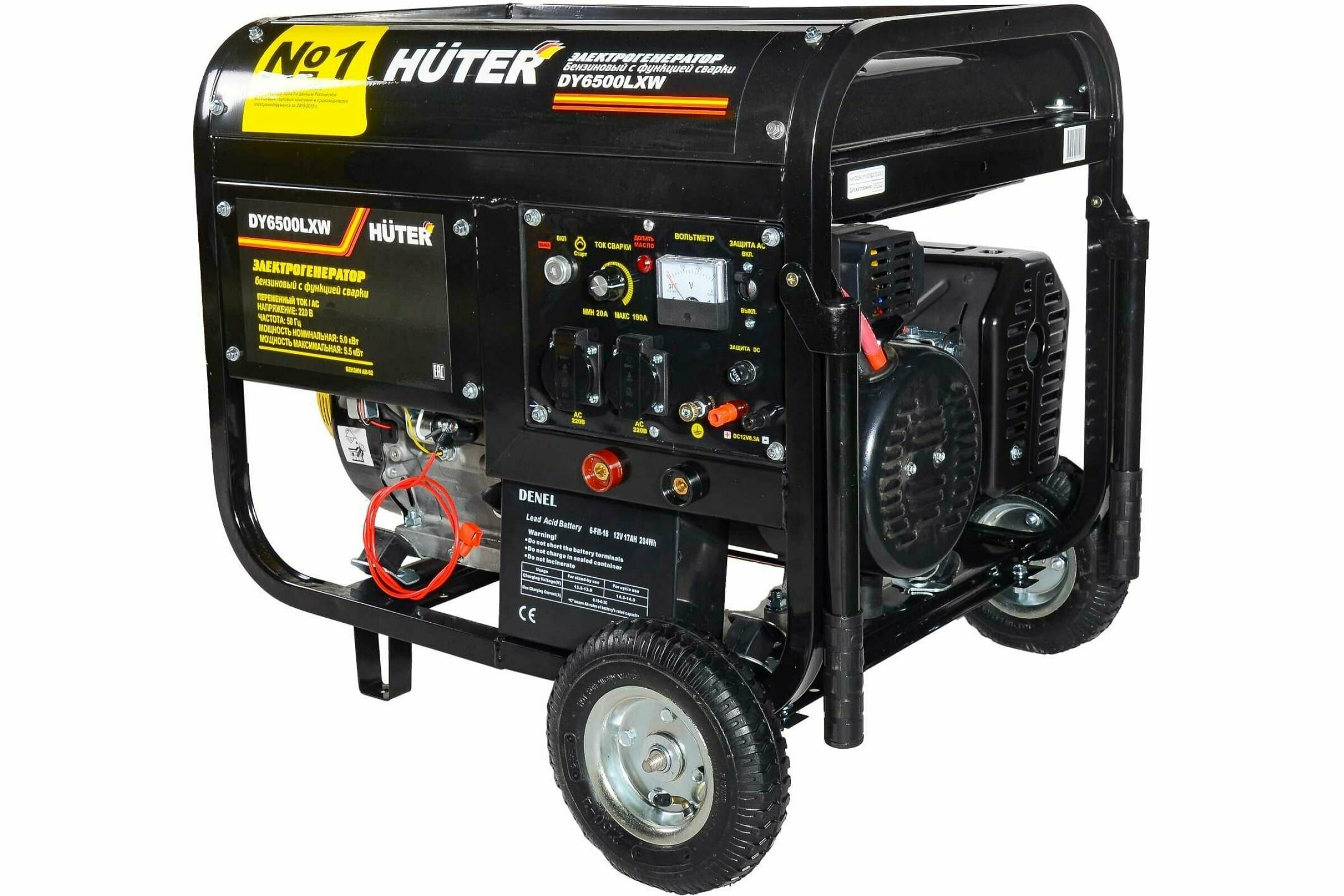 Бензиновый генератор Huter DY6500LXW, сварочный, 220/12 В, 5.5кВт [64/1/18]