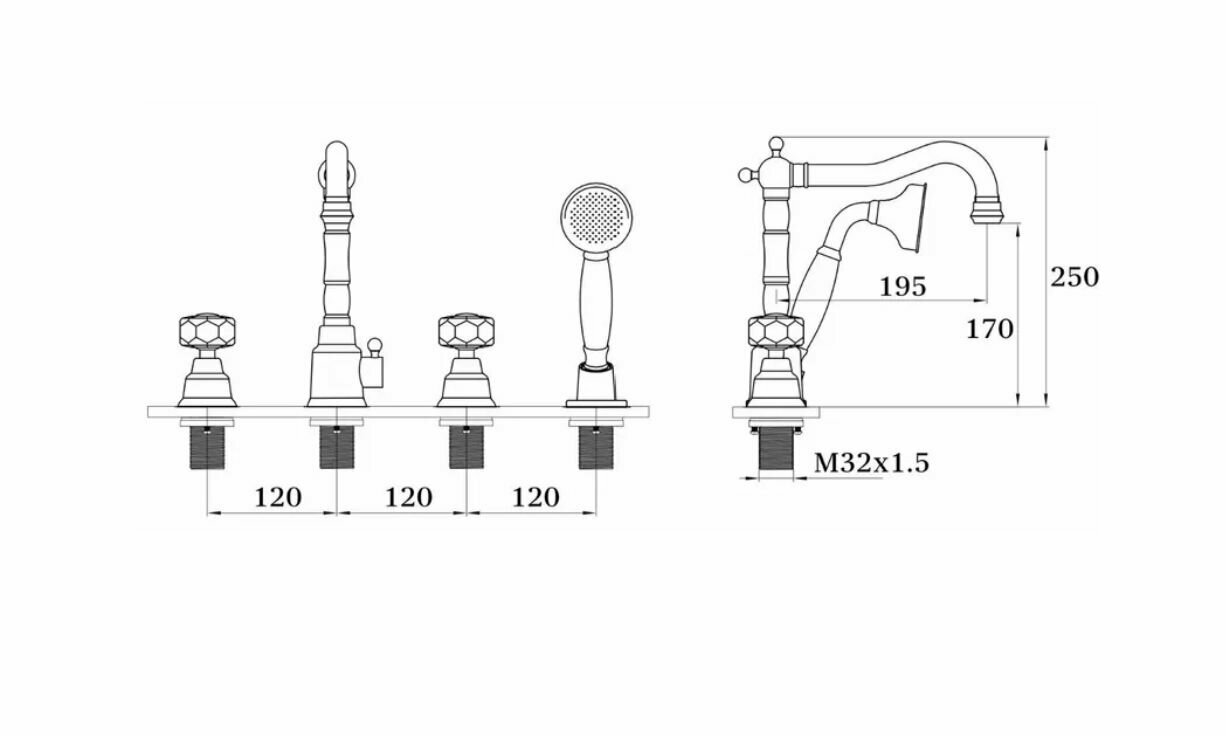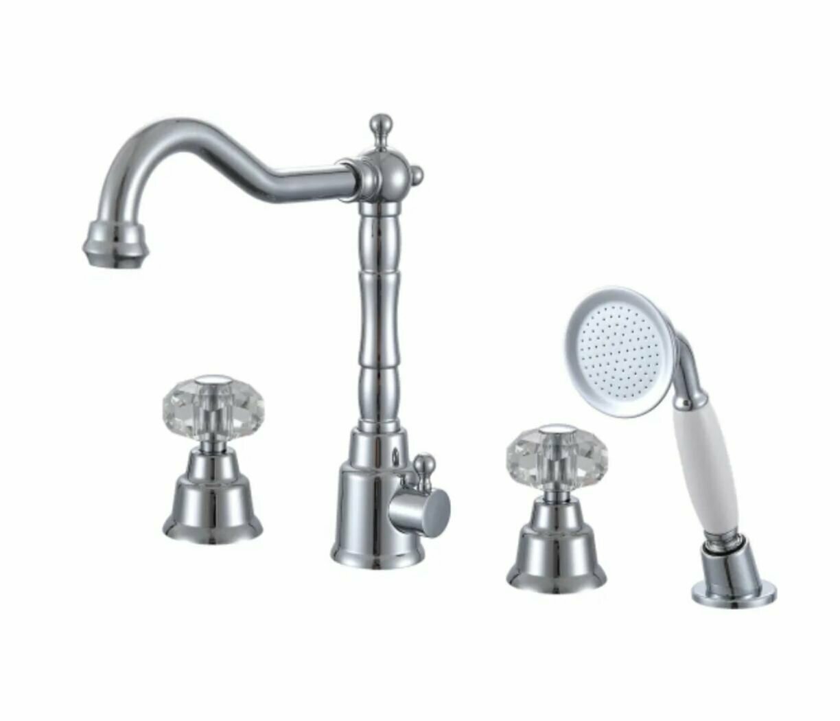 Смеситель на борт ванны на 4 отверстия с поворотным изливом