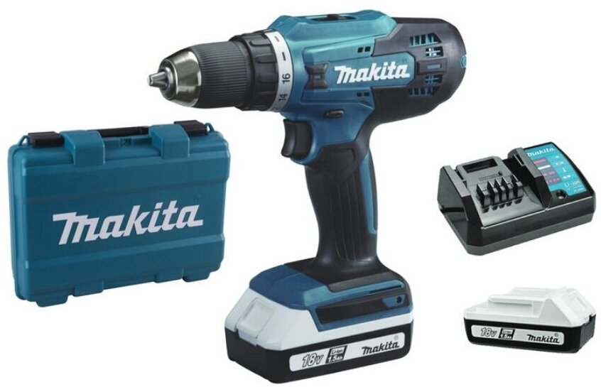 Дрель-шуруповерт аккумуляторная 42Нм G-series 18В, 2х1,5Ач, з/у, Makita DF488DWE