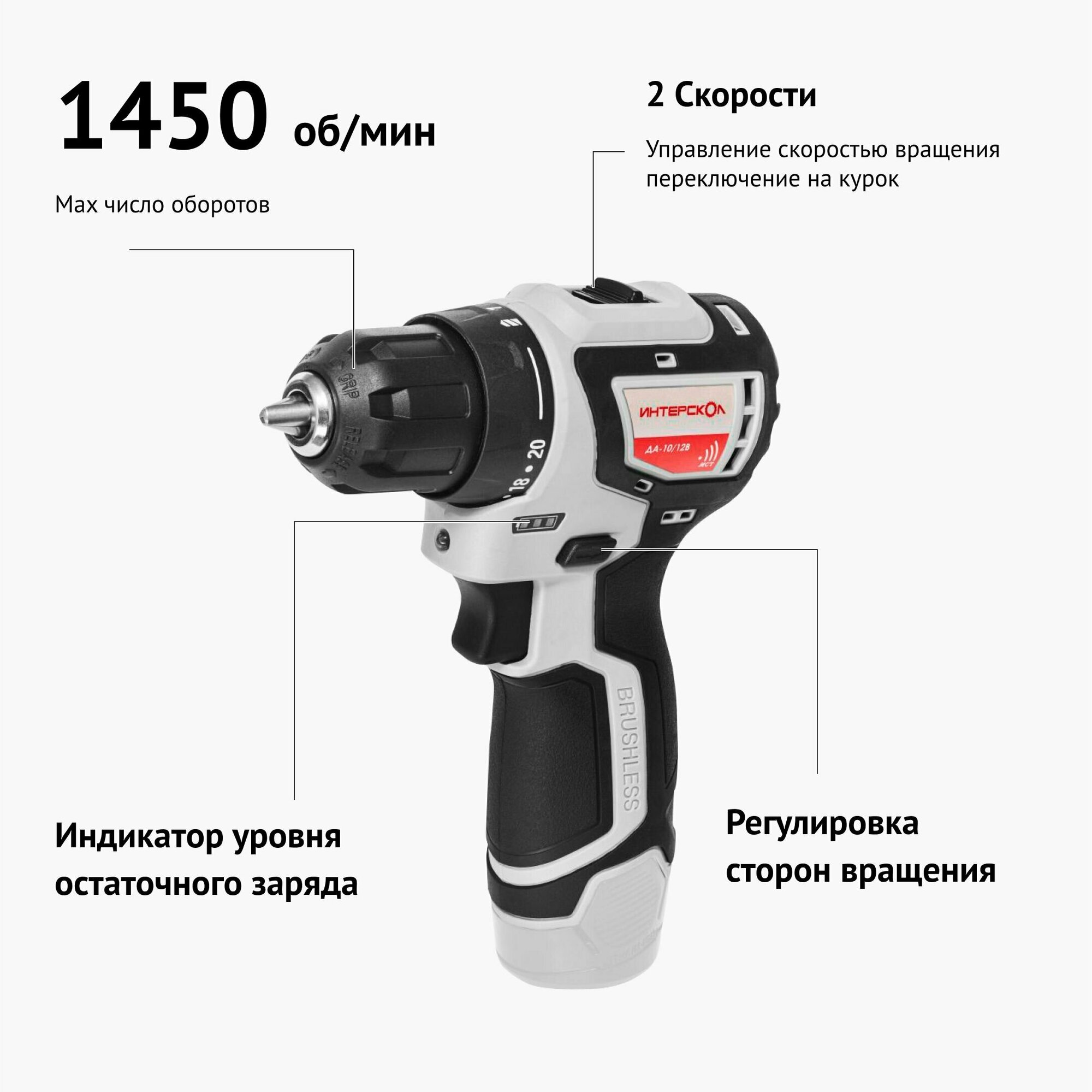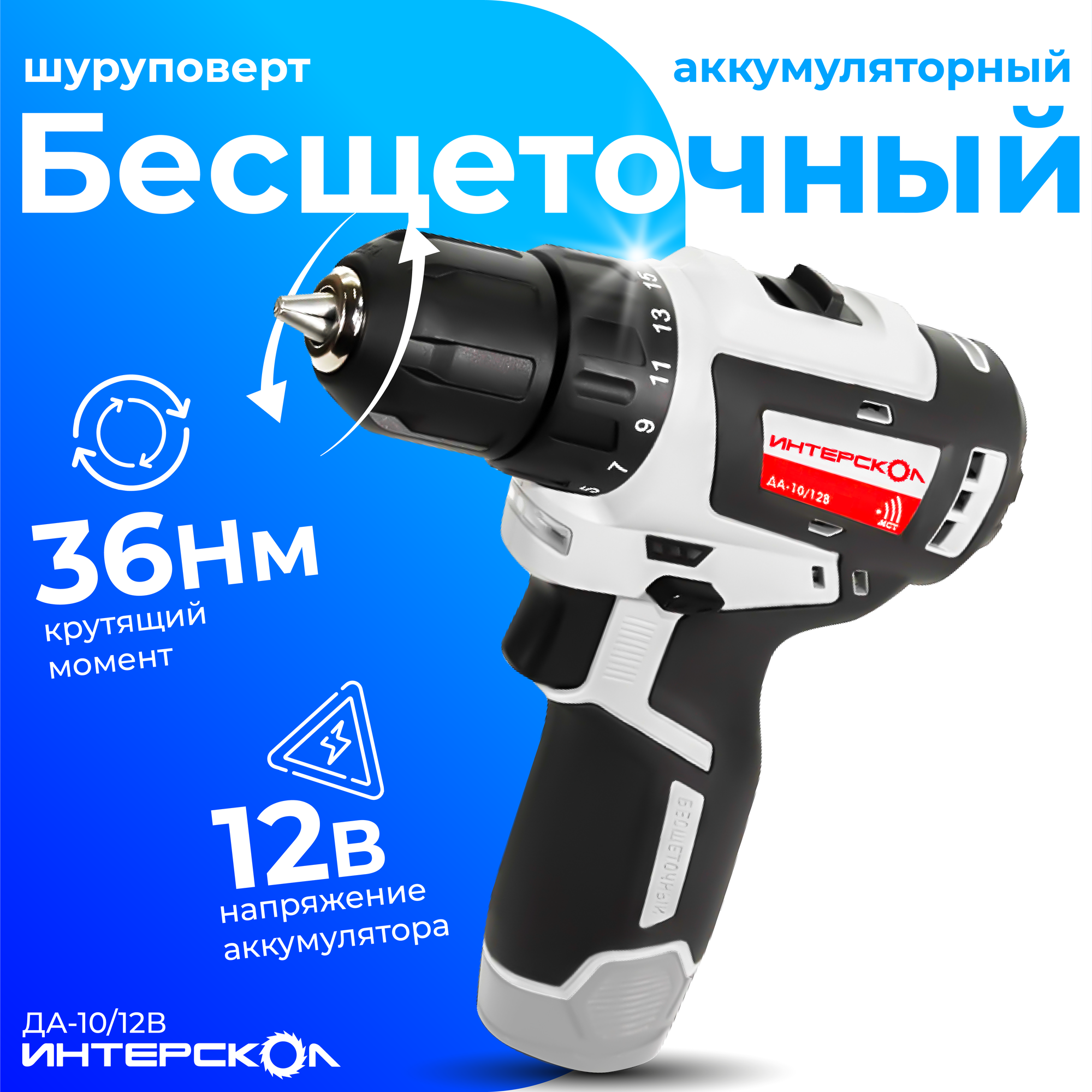 Бесщеточная аккумуляторная дрель-шуруповерт Интерскол ДА-10/12В минимакс (без аккум. и ЗУ)