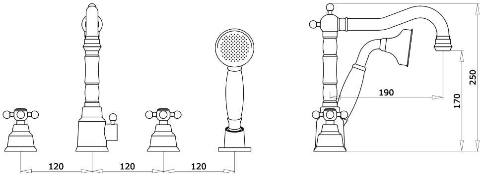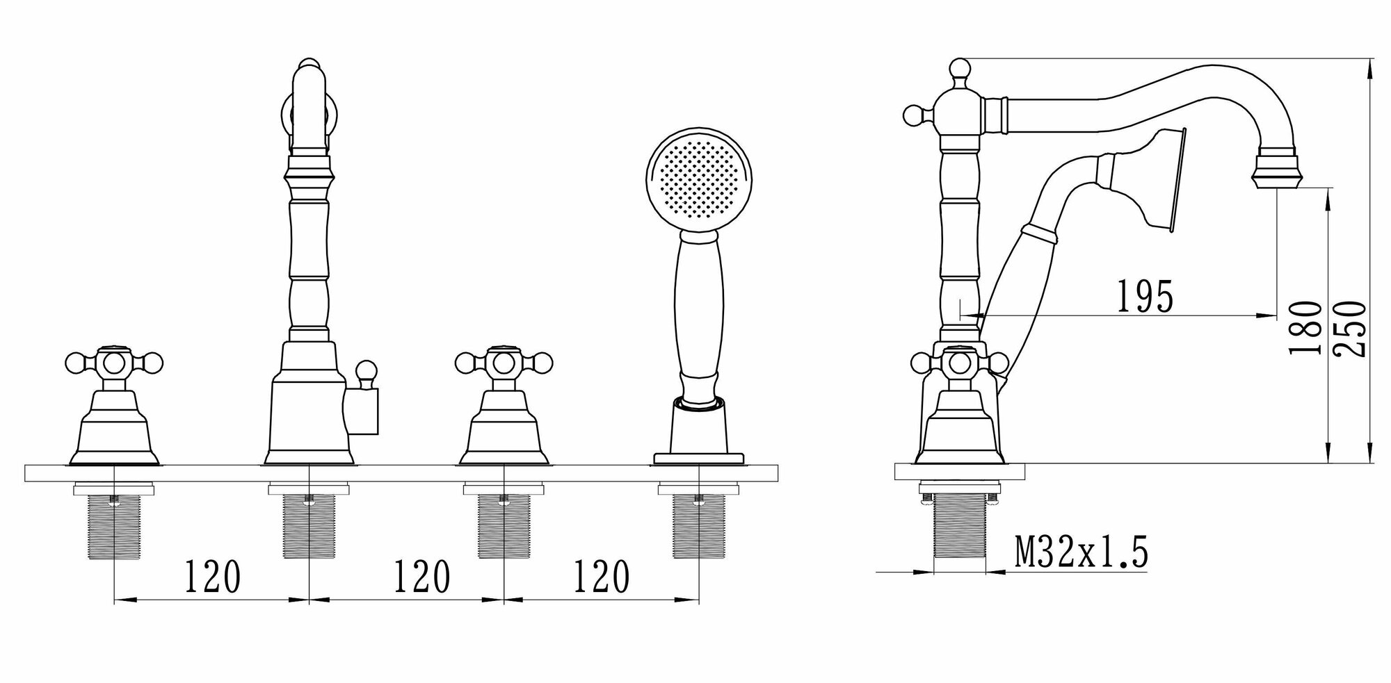 GZ09033 Смеситель на борт ванны (4-отв) хром