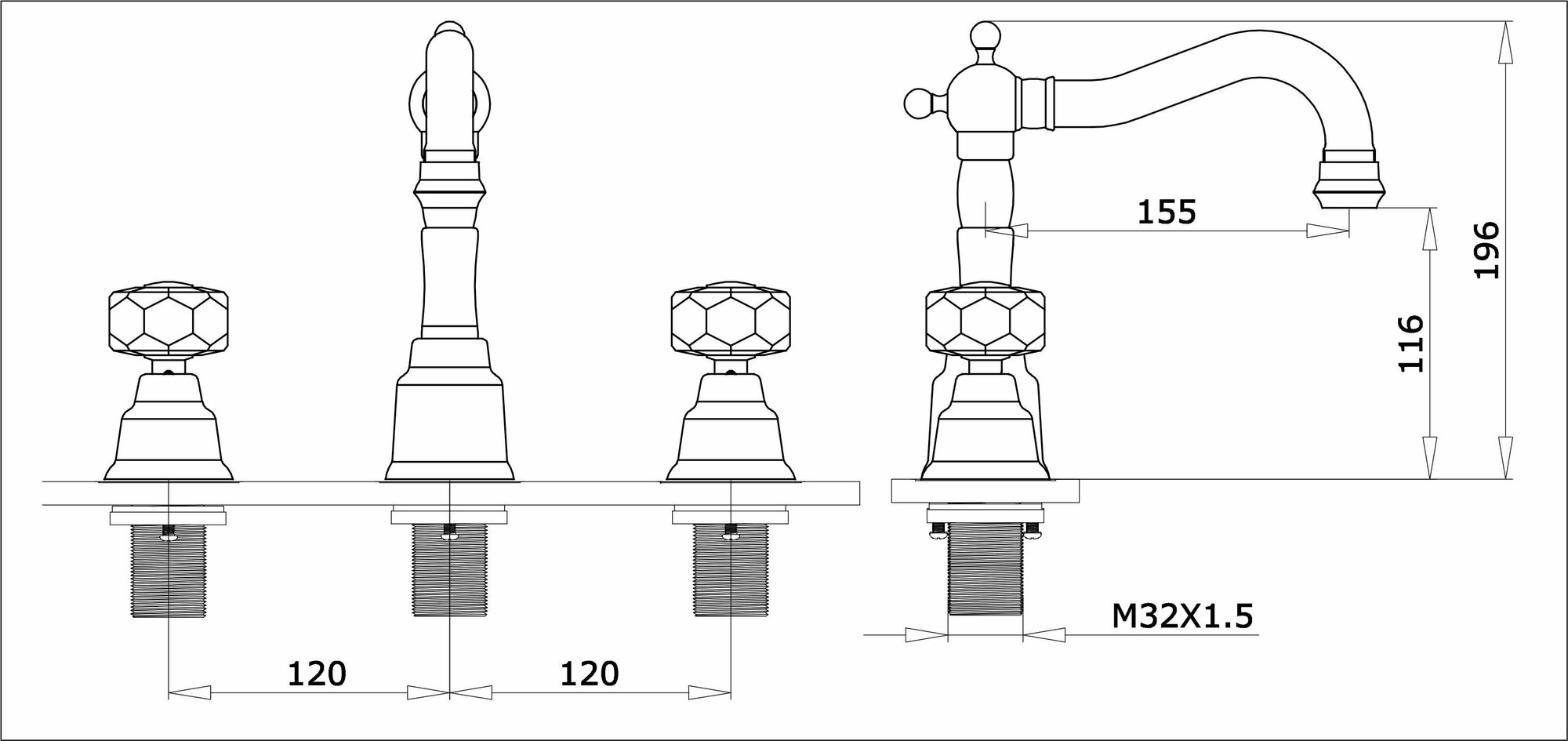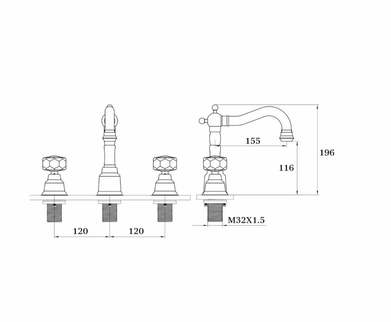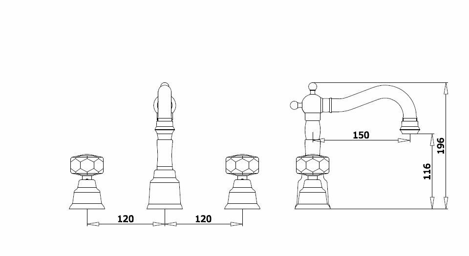 Смеситель на борт раковины (3-отв)