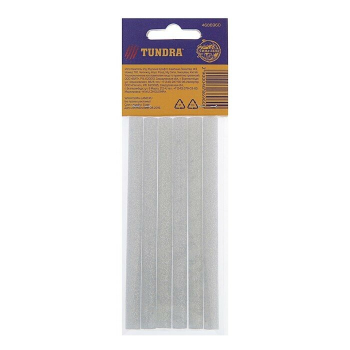Клеевые стержни тундра, 7 х 100 мм, серебристые с блестками, 6 шт., TUNDRA
