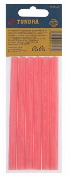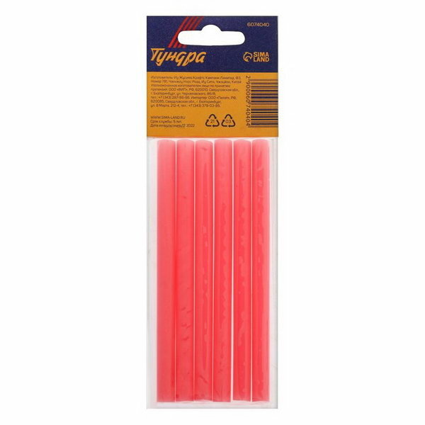 Тундра Клеевые стержни тундра, 7 х 100 мм, розовые, 6 шт.
