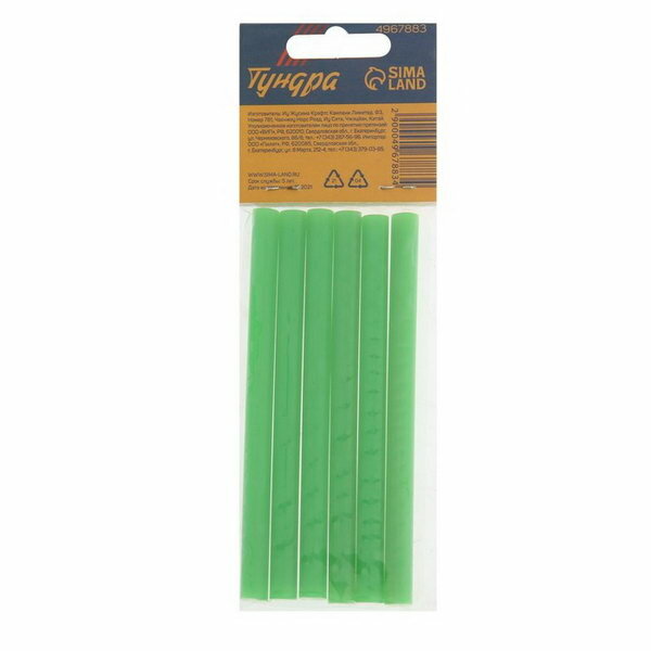 Клеевые стержни тундра, 7 х 100 мм, зеленые, 6 шт.