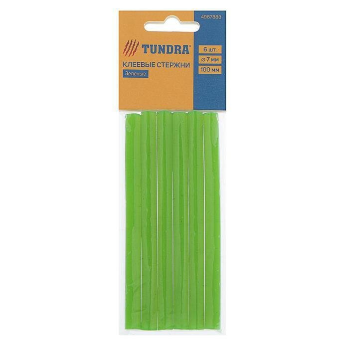 Клеевые стержни тундра, 7 х 100 мм, зеленые, 6 шт., TUNDRA