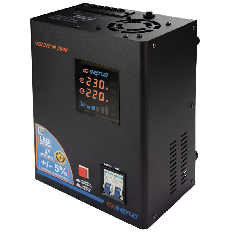 Cтабилизатор Энергия Voltron 3000 по точности: 105-265В по защите: 95-280В .
