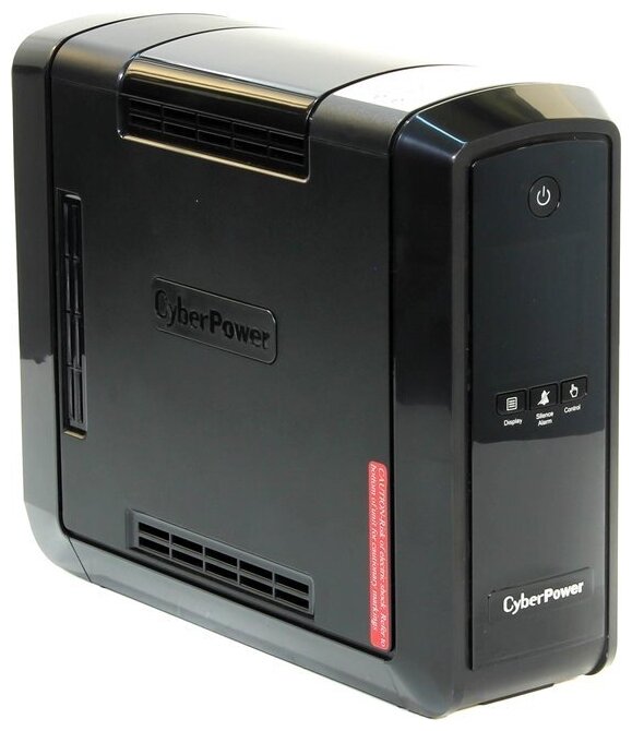 В инверсионном/батарейном режиме довольно тихий, в линейном — бесшумный. Хорошо читаемый под любым углом дисплей с графической и цифровой информацией о параметрах работы ИБП. По умолчанию дисплей активируется на 1 минуту нажатием кнопки на передней панели, но можно задействовать его включенным постоянно. Этой же кнопкой перебираются 10 цифровых параметров в т.ч. входное/выходное напряжение (проверял тестером — все точно), частота, выходная мощность, нагрузка в процентах, оставшееся время работы. Другой кнопкой устанавливаются 3 порога чувствительности перехода в батарейный режим. Точнее эти значения можно подстроить с помощью прилагаемого ПО для Windows. (Правда с Линуксом сложнее - при попытке установки соответствующего софта, с сайта CyberPower, Ubuntu 12.10 ругается – «Этот пакет плохого качества…») |