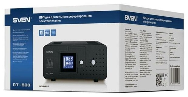 Купить UPS 500VA Sven (RT-500 Black) Lcd, 1 евро розетка, без АКБ .