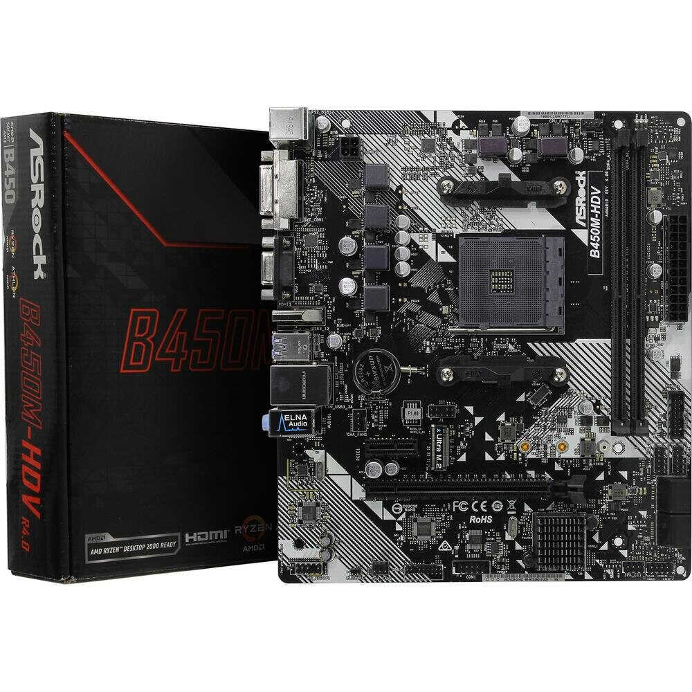 Материнская плата ASRock B450M-HDV R4.0 Socket AM4 AMD B450 2xDDR4 1xPCI-E 16x 1xPCI-E 1x 4 mATX Retail
