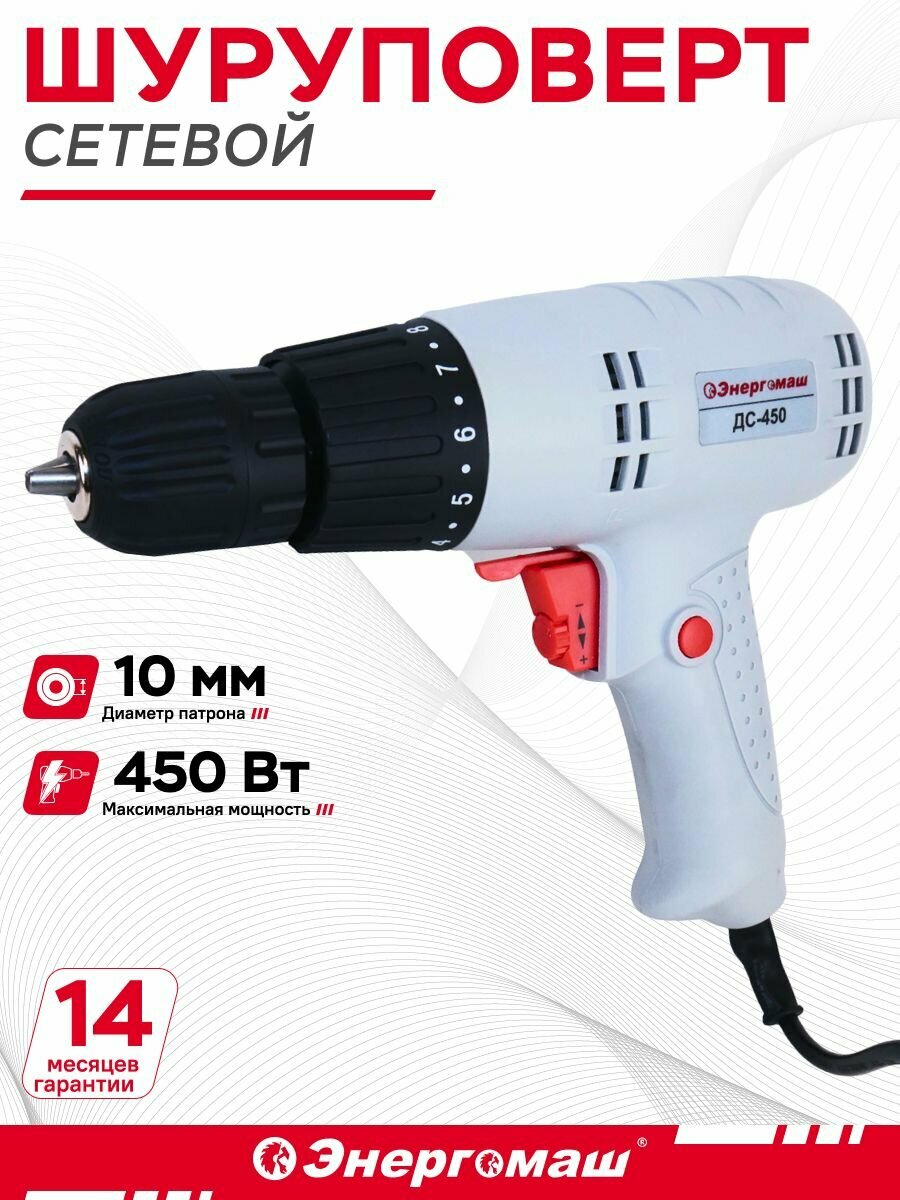 Дрель-шуруповерт сетевая Энергомаш ДС-450