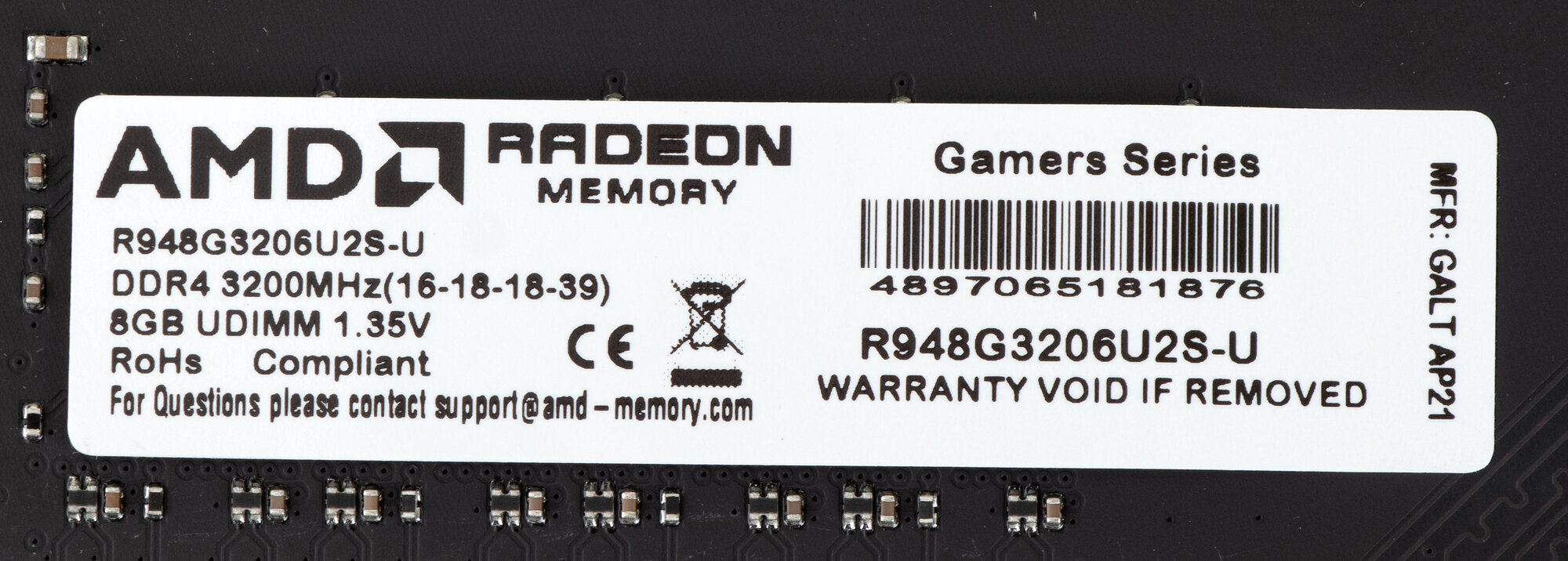 AMD Модуль оперативной памяти 8ГБ DDR4 SDRAM AMD Radeon R9 Gamer R948G3206U2S-U (PC25600, 3200МГц, CL16) (ret)