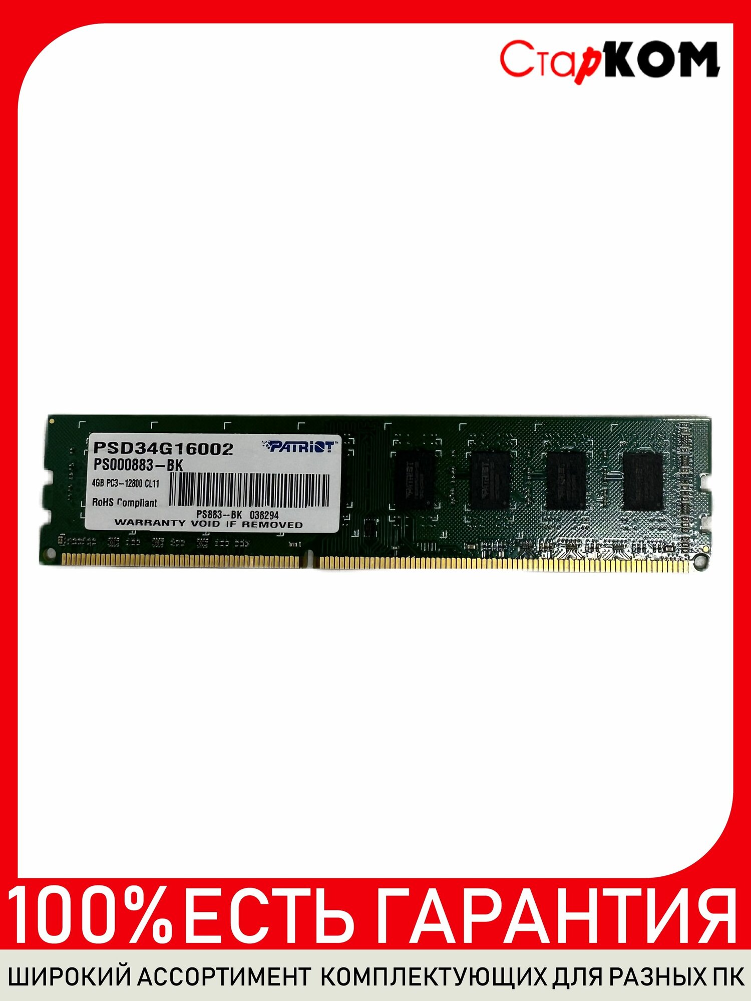 Patriot Memory Модуль памяти DDR3 4ГБ Patriot Memory PSD34G160081
