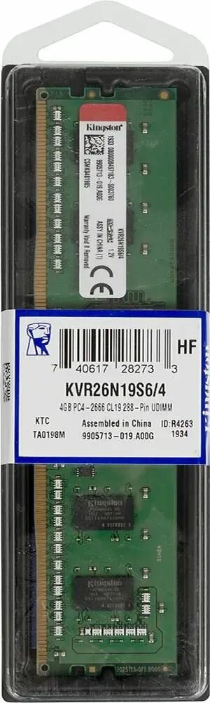 Оперативная память Kingston ValueRAM (KVR26N19S6/4) DIMM DDR4 4ГБ - DDR4, 4ГБх1 шт,