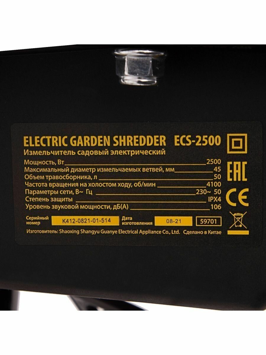 Измельчитель садовый электрический ECS-2500, 2500 Вт, 45 мм Denzel [59701]