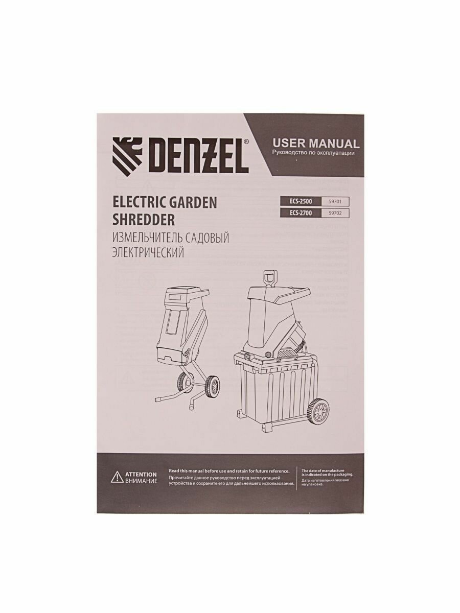Измельчитель садовый электрический Denzel ECS-2500, 2500 Вт, 45 мм 59701