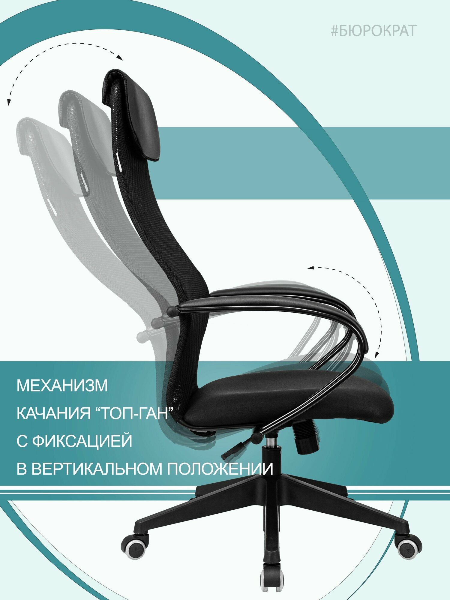Кресло руководителя Бюрократ CH-608/BLACK, PL, спинка сетка черный, сиденье черный (1141494)