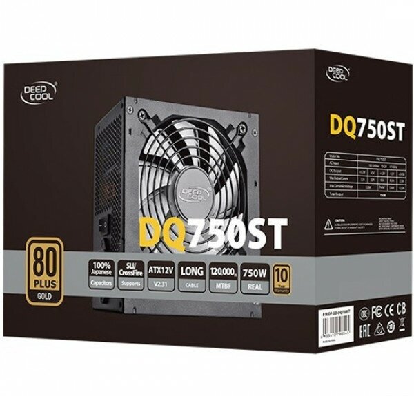 Блок питания Deepcool Quanta DQ750ST (ATX 2.31, 750W, PWM 120mm fan, Active PFC, 6*SATA, 80+ GOLD) RET