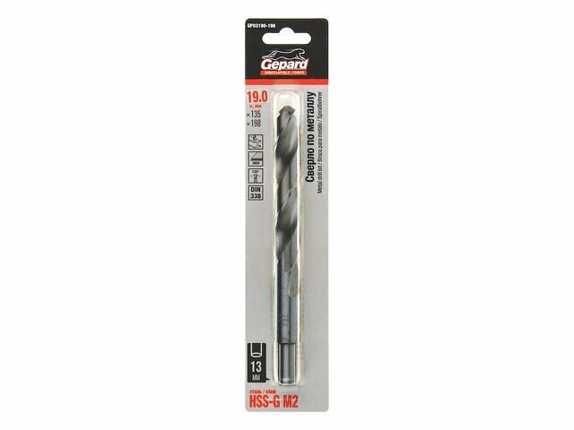 Сверло по металлу ц/х 19.0х135х198 мм HSS-G GEPARD (хвостовик 13мм) (GP03190-198)
