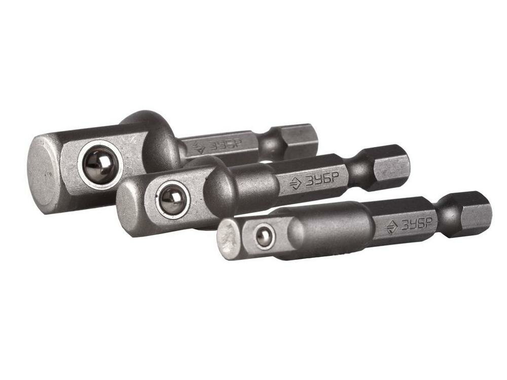 ЗУБР Набор ЗУБР Адаптеры "эксперт" для торцовых головок, E1/4" - 1/4", E1/4" - 3/8", E1/4" - 1/2", 3 пред