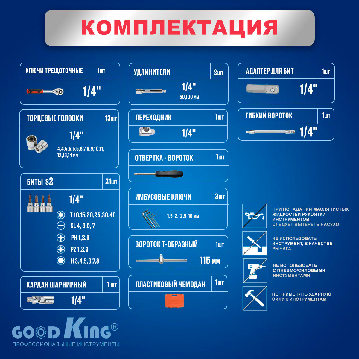 GOODKING Набор инструментов 46 предметов 1/4 трещотка K-10046