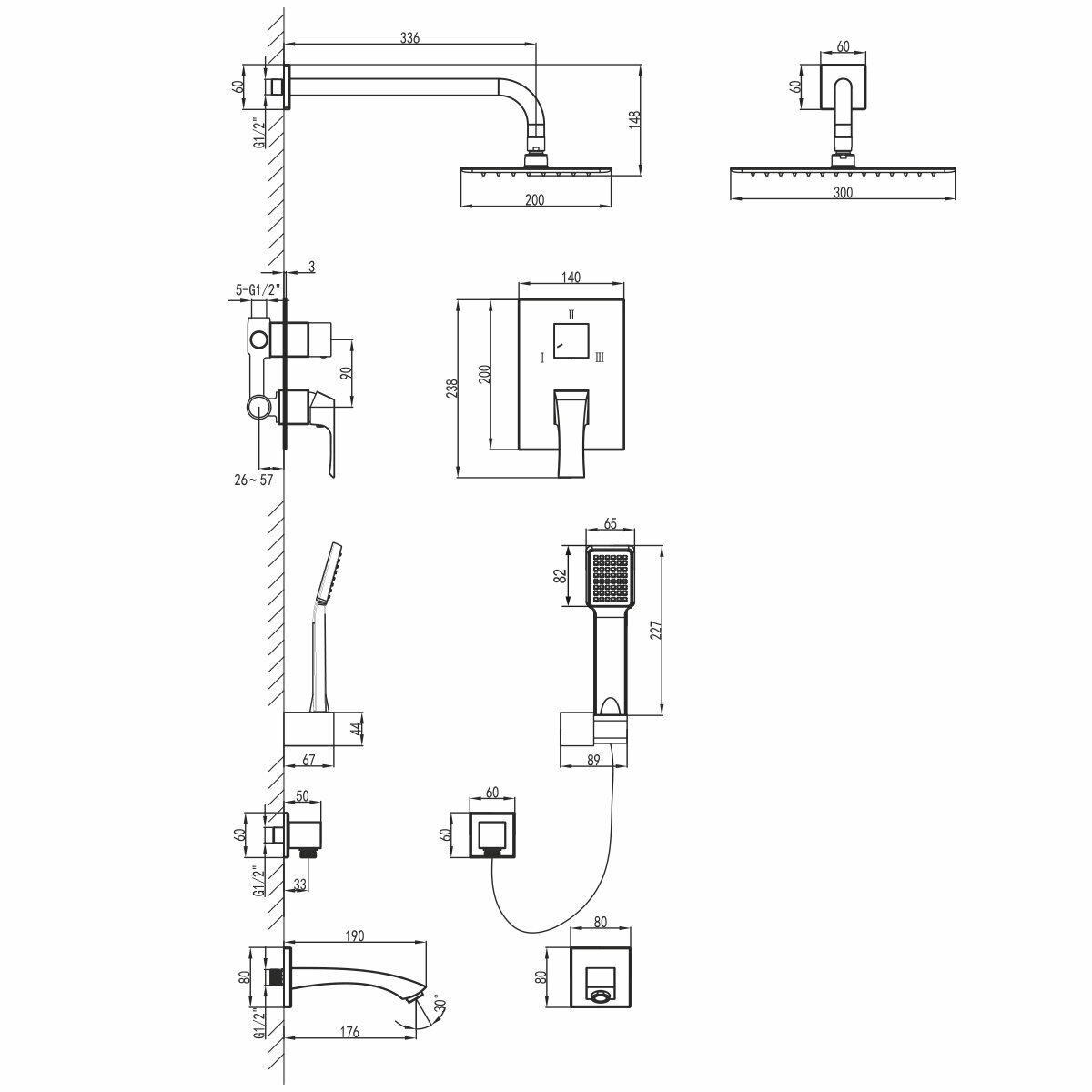 | Комплектация | душевой гарнитур - 1 шт. / верхний душ - 1 шт. / шланговое подключение - 1 шт. / смеситель для ванны с душем - 1 шт. / настенный держатель - 1 шт. |