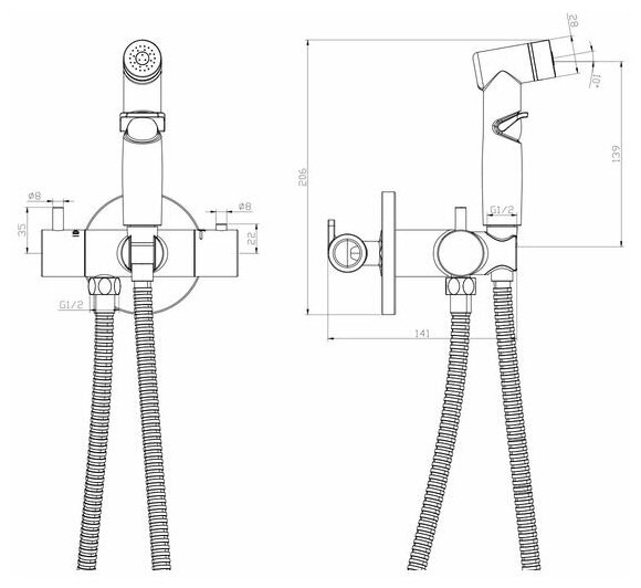 Гигиенический душ Rossinka X X25-58 с термостатическим смесителем
