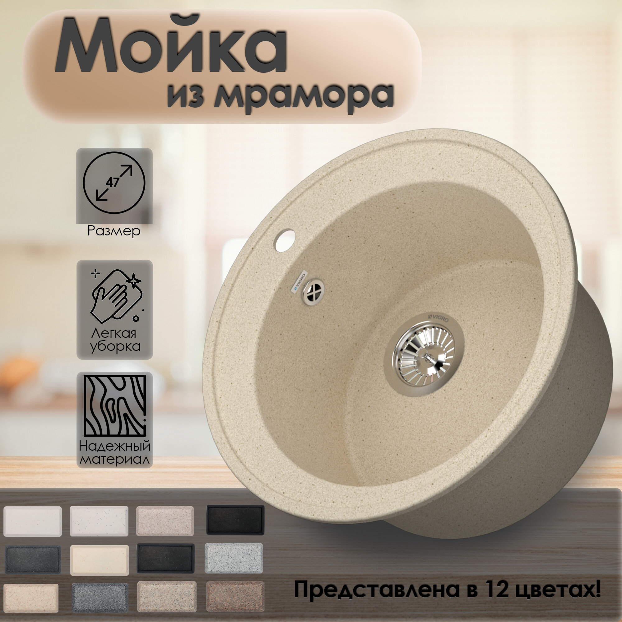 Кухонная мойка из искусственного камня Vigro VG102 латте (470*470*190)