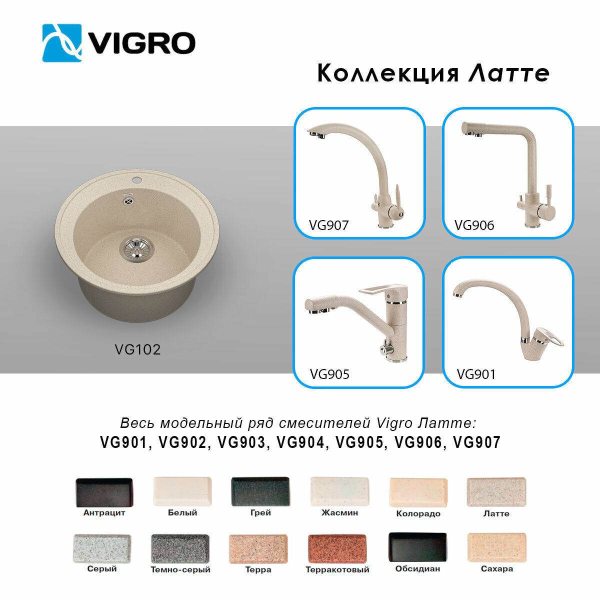 Мойка для кухни Vigro VG102 жасмин
