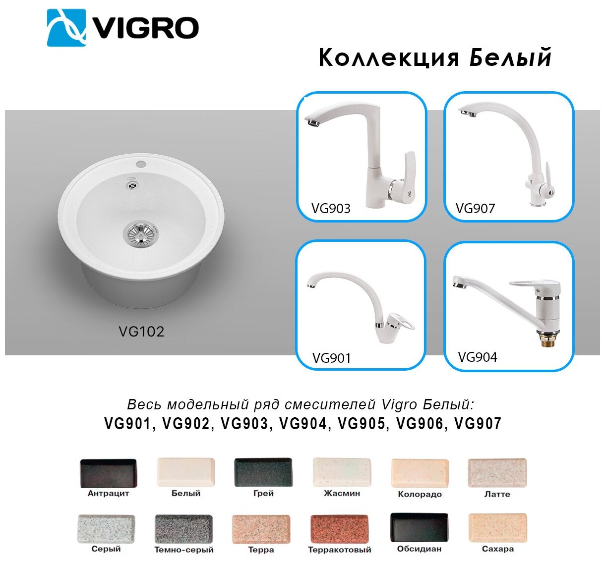 Ниже Вы можете прочитать отзывы на Кухонная мойка из искусственного камня Vigro VG102 белый (470*470*190), ознакомится с подробными характеристиками, посмотреть интересные обзоры и фотографии на Кухонная мойка из искусственного камня Vigro VG102 белый (470*470*190).