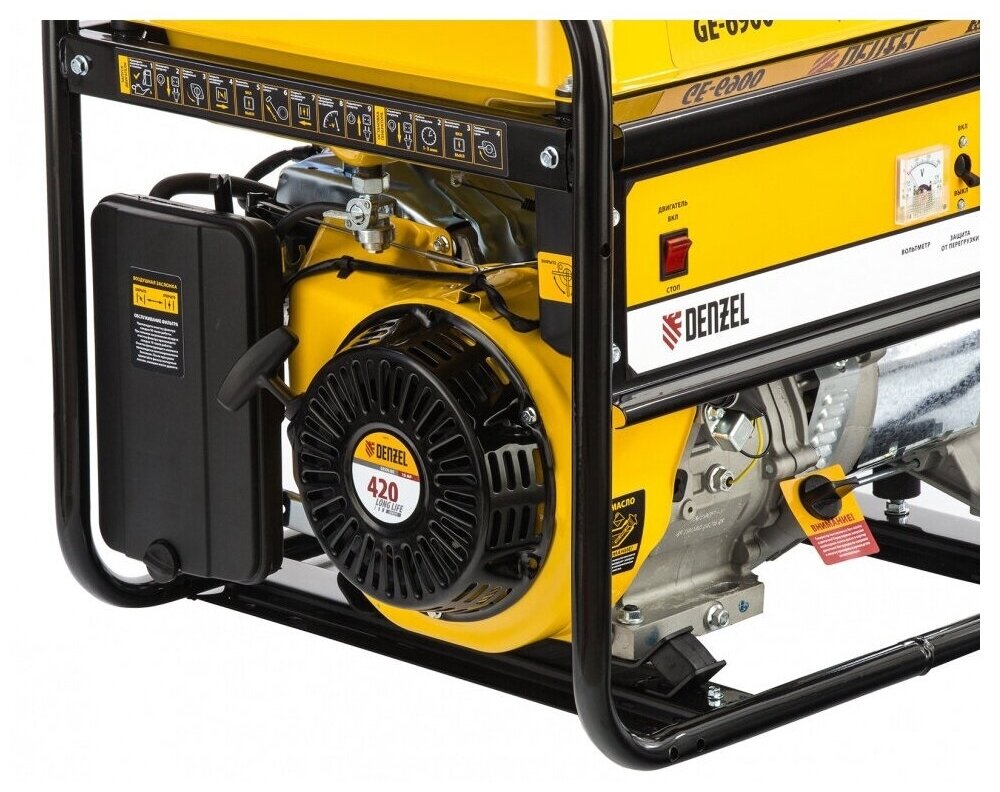Генератор бензиновый Denzel GE 6900 (AVR, 5.5 кВт, 220 В/50 Гц, 25 л, ручной старт, ручной стартер )